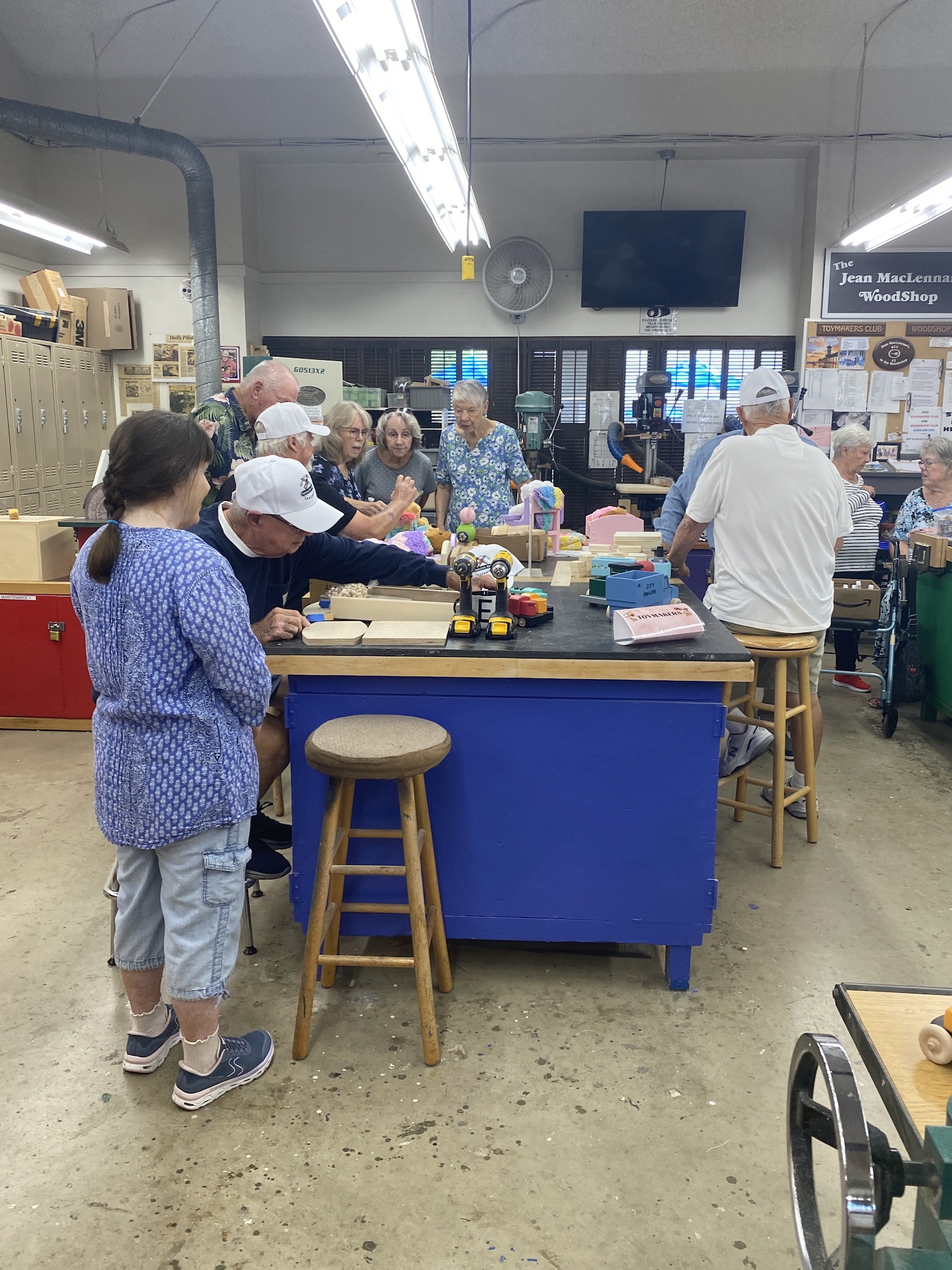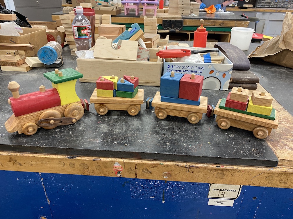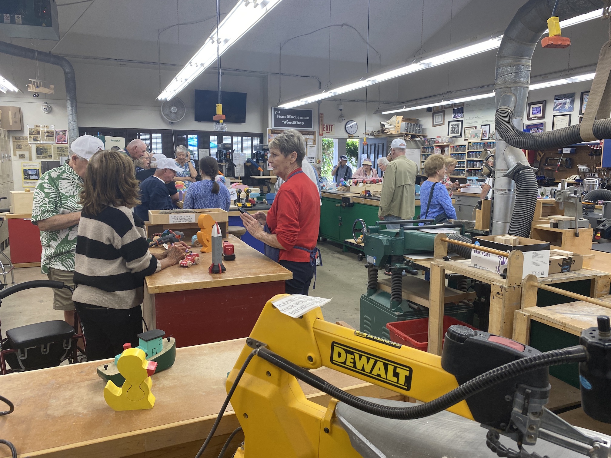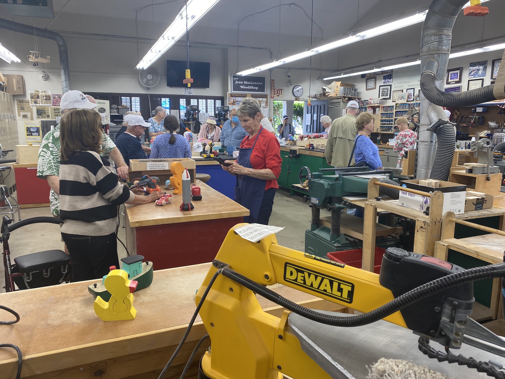 Jean MacLennan and his wife of 58 years, Sue, moved into Landmark in 1970. Sue remarks that they would watch the other phases being built from their second story unit and they "loved the view." Jean was still working for IBM when they moved into Landmark 53 years ago and retired after 23 years with IBM. Once retired, Jean loved working in the woodshop and not only spent much of his free time there but was also instrumental in adding most of the equipment the woodshop currently uses. Jean's woodworking in the Landmark woodshop was nothing less than prolific over the years! He designed and made virtually all of the signs, unit numbers and furnishings that we see everyday here. His legacy will always be a part of the Huntington Beach Landmark community! While not working for the Landmark community or serving on the Board of Directors several times, Jean made toys for underprivileged kids around the world. Jean designed and made jigs for the Toymakers to create toys. Over the years he was instrumental in making over 60,000 toys for children. The woodshop in Landmark will now and forever more be known as the "Jean MacLennan Woodshop."