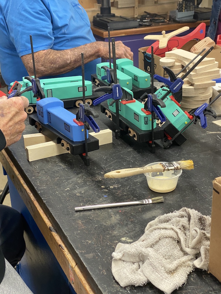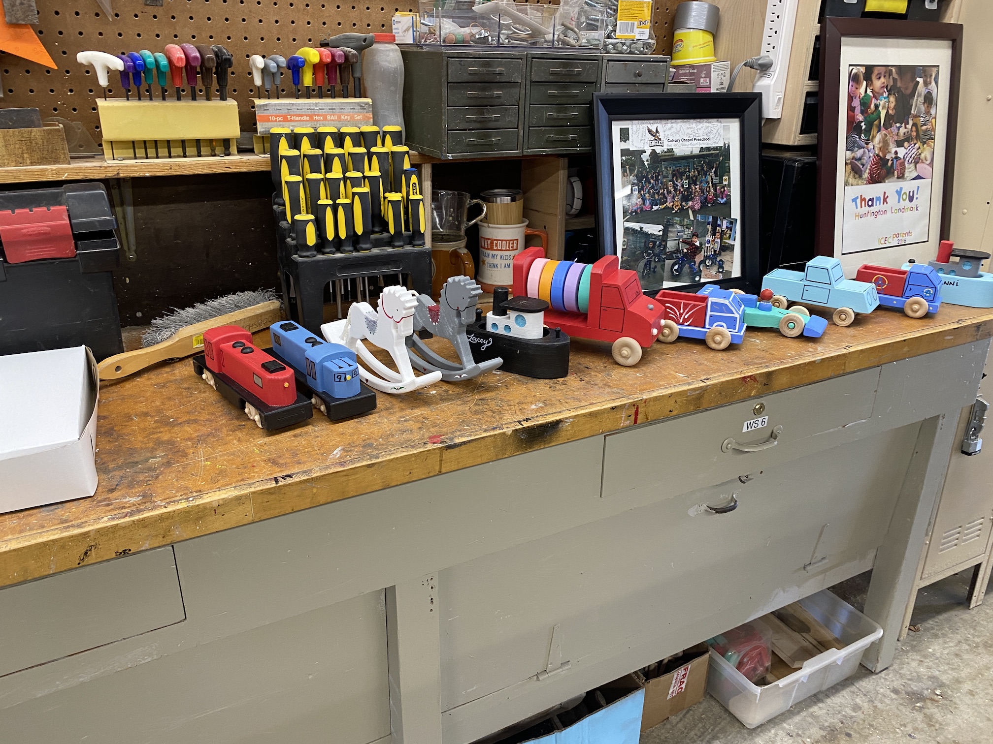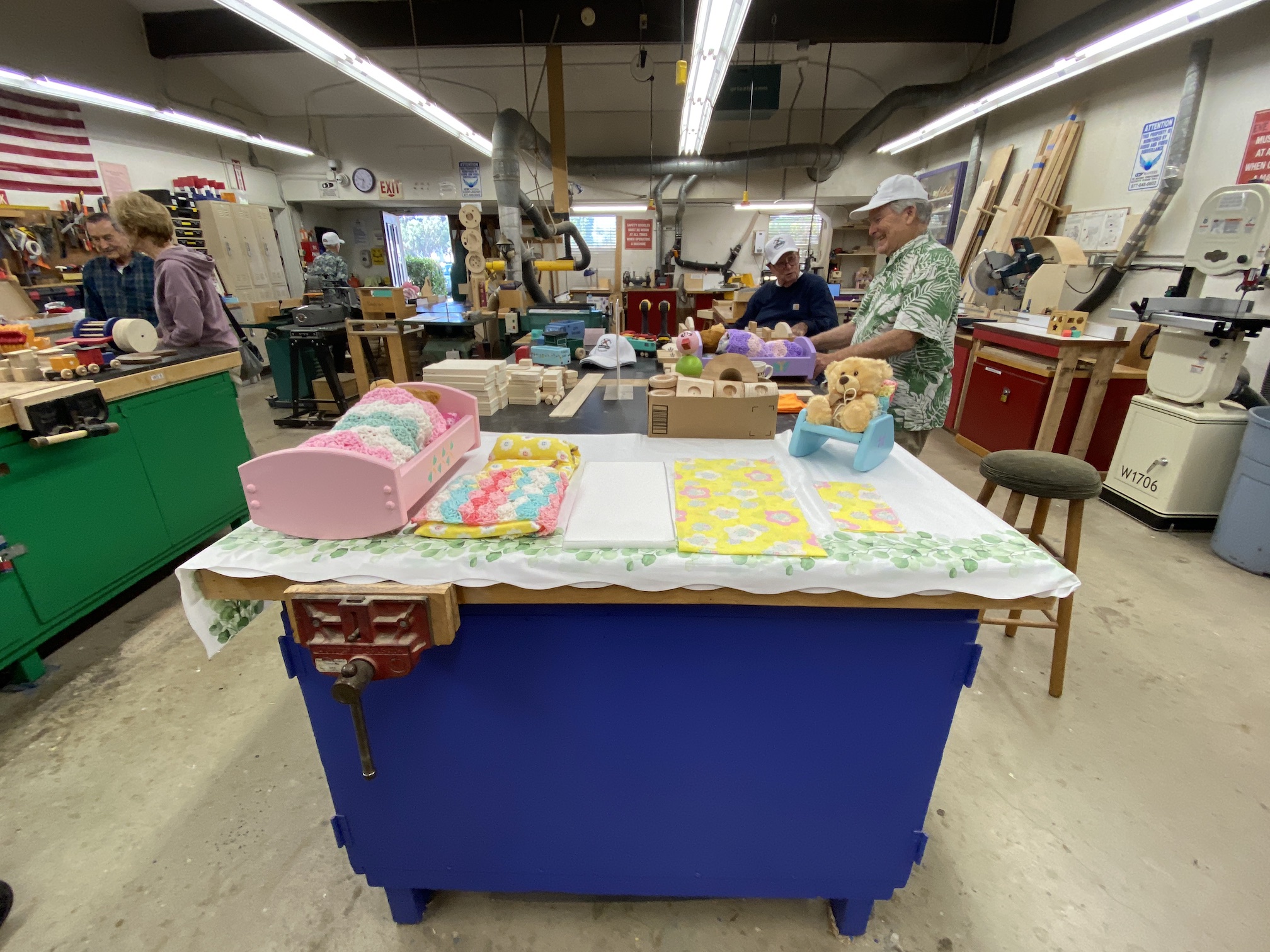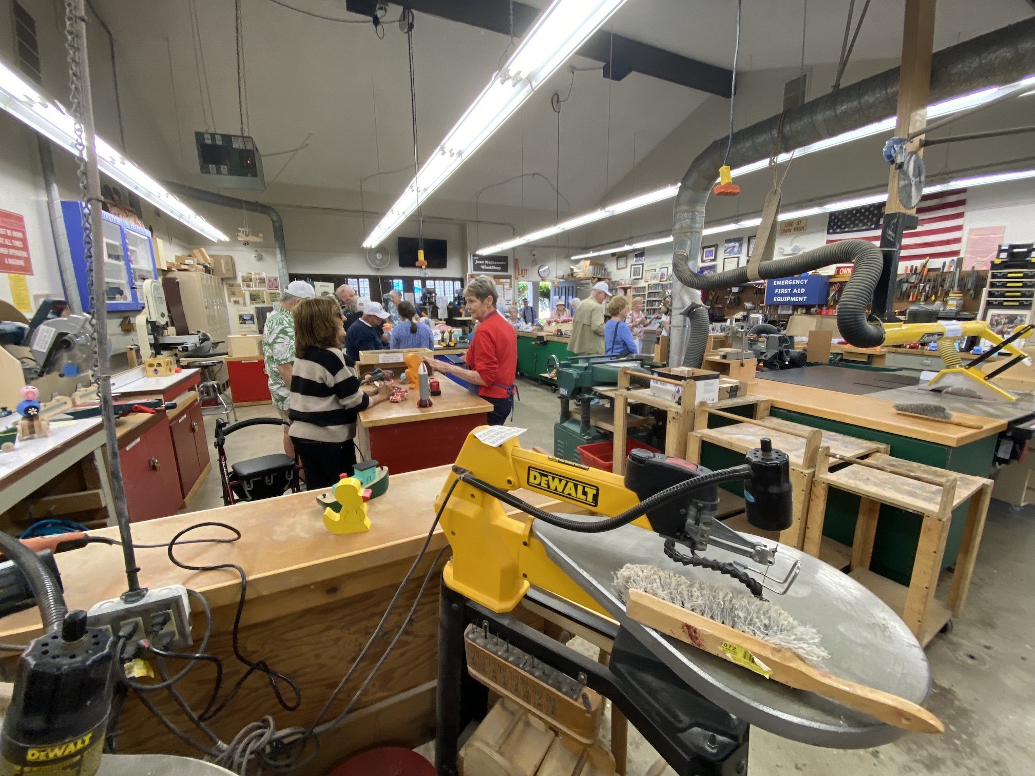 Jean MacLennan and his wife of 58 years, Sue, moved into Landmark in 1970. Sue remarks that they would watch the other phases being built from their second story unit and they "loved the view." Jean was still working for IBM when they moved into Landmark 53 years ago and retired after 23 years with IBM. Once retired, Jean loved working in the woodshop and not only spent much of his free time there but was also instrumental in adding most of the equipment the woodshop currently uses. Jean's woodworking in the Landmark woodshop was nothing less than prolific over the years! He designed and made virtually all of the signs, unit numbers and furnishings that we see everyday here. His legacy will always be a part of the Huntington Beach Landmark community! While not working for the Landmark community or serving on the Board of Directors several times, Jean made toys for underprivileged kids around the world. Jean designed and made jigs for the Toymakers to create toys. Over the years he was instrumental in making over 60,000 toys for children. The woodshop in Landmark will now and forever more be known as the "Jean MacLennan Woodshop."