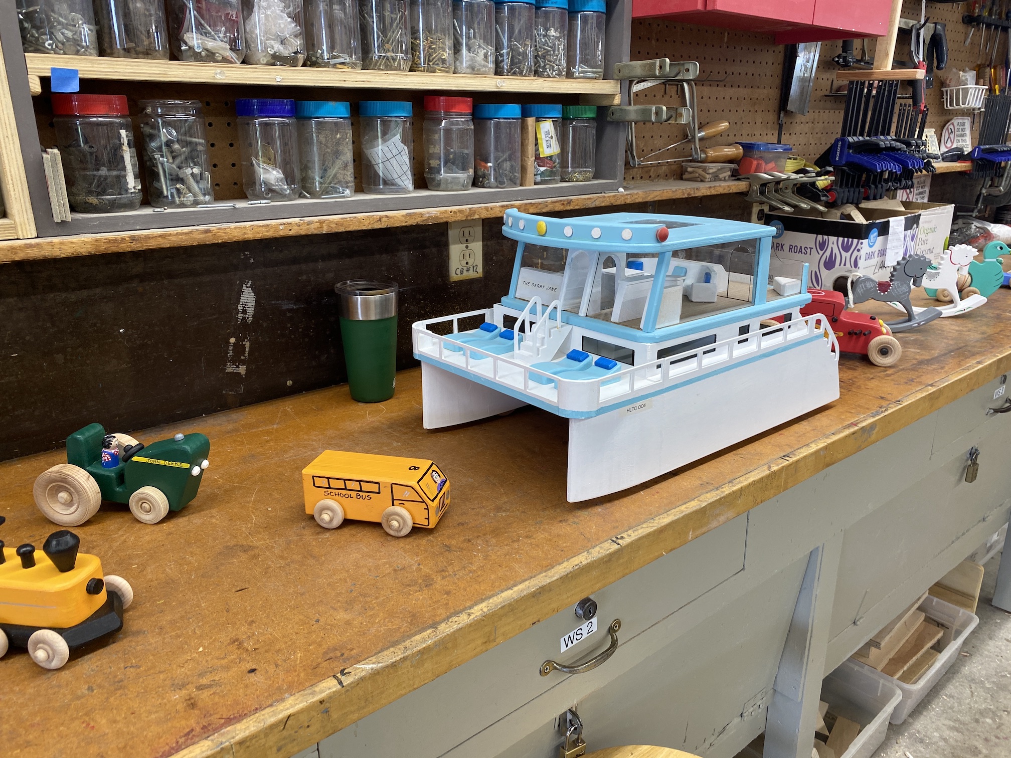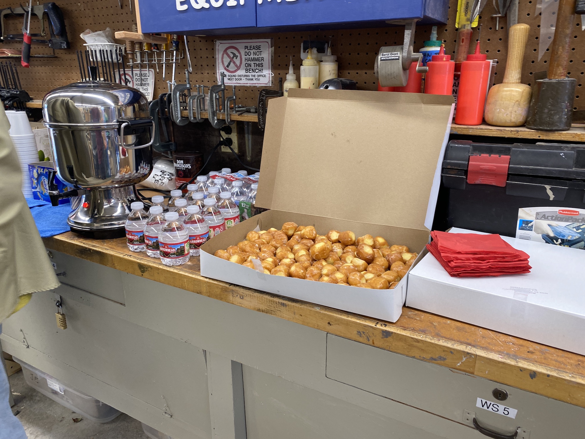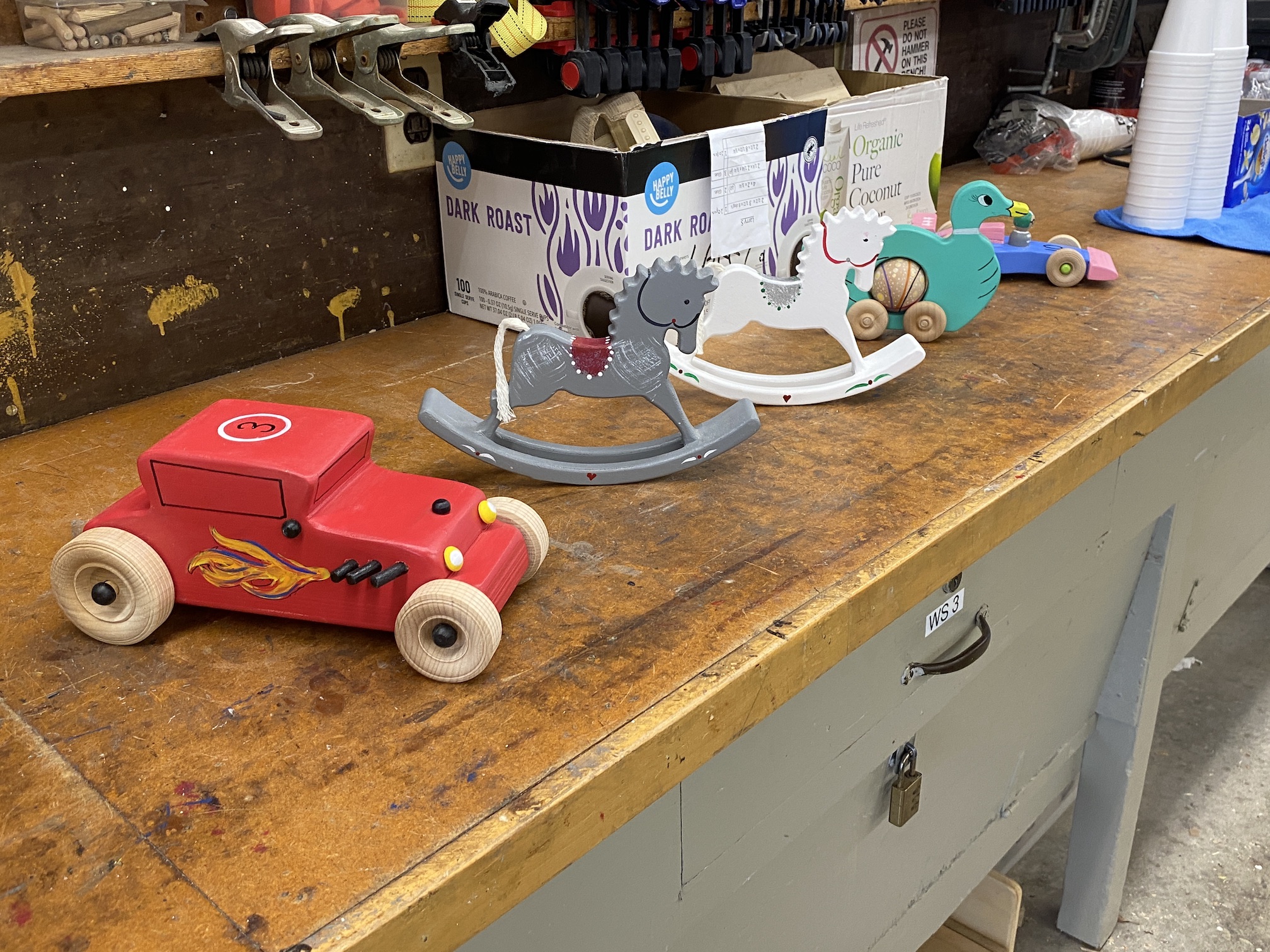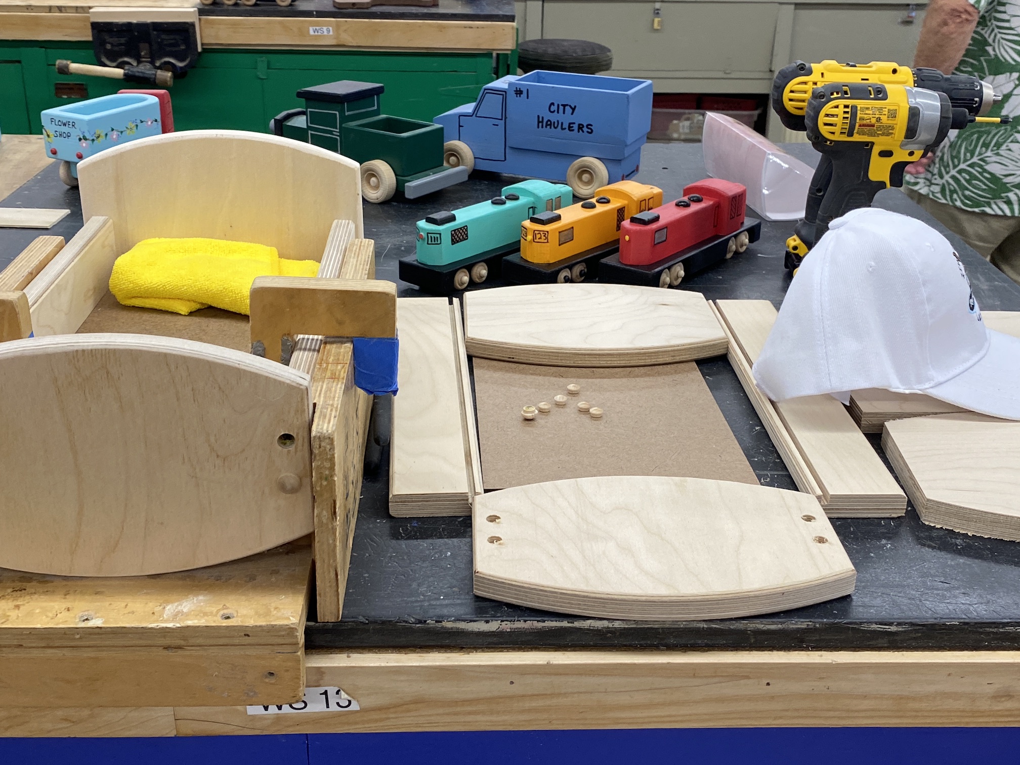 Jean MacLennan and his wife of 58 years, Sue, moved into Landmark in 1970. Sue remarks that they would watch the other phases being built from their second story unit and they "loved the view." Jean was still working for IBM when they moved into Landmark 53 years ago and retired after 23 years with IBM. Once retired, Jean loved working in the woodshop and not only spent much of his free time there but was also instrumental in adding most of the equipment the woodshop currently uses. Jean's woodworking in the Landmark woodshop was nothing less than prolific over the years! He designed and made virtually all of the signs, unit numbers and furnishings that we see everyday here. His legacy will always be a part of the Huntington Beach Landmark community! While not working for the Landmark community or serving on the Board of Directors several times, Jean made toys for underprivileged kids around the world. Jean designed and made jigs for the Toymakers to create toys. Over the years he was instrumental in making over 60,000 toys for children. The woodshop in Landmark will now and forever more be known as the "Jean MacLennan Woodshop."